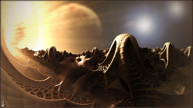 Just playing with something simple...BG is a very old Mojoworld image fractal is just something simple Surface Mapped, VL light for Booster and a couple positional lights for effect...TFL