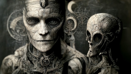 Midjourney AI GeneratedReally like how Mig-J interprets my Steampunk imagery, use a combo of Giger/steampunk and a scene