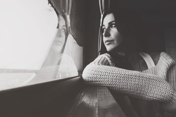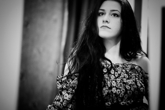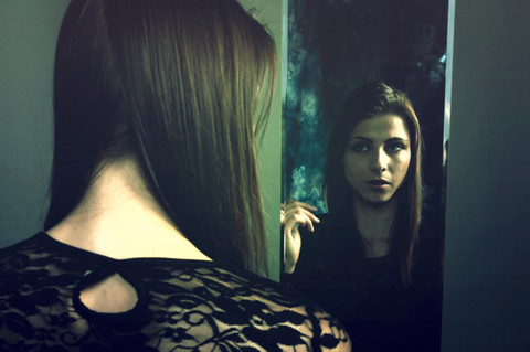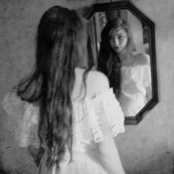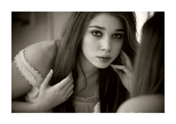 I like that. Turning away from the mirror. There is a certain sadness on her face, perhaps caused by what she sees there, reflected in her eyes.