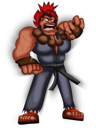 É que neste desenho ele acabou de levar um murro do evil ryu e está se preparando pra arrancar o coração dele. Pode ver pelo olhar dele de "seu miserável!". Hehe! XD Brincadeira, inventei isso agora.