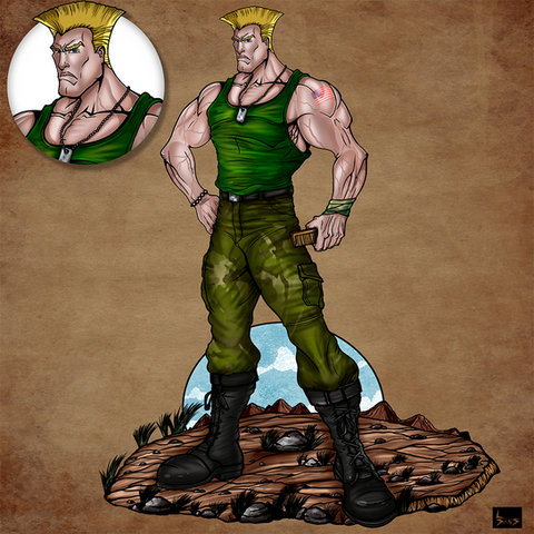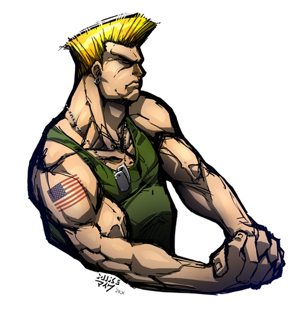Class man. Love the character Guile, he's really cool. Wheres Blanka fanart? lol Just a thing, did Guile really have tattoos on both arms? Anyway, great stuff!