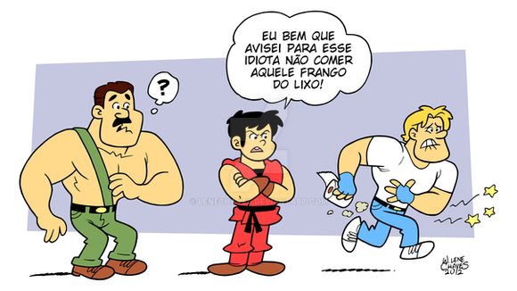Eu faço desenho e arte-final no papel. Aí eu escaneio e uso editores de imagem para as cores. Neste foi photoshop, mas atualmeute só uso Gimp.