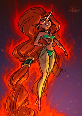 The picture is awesome too. Specially like her wings and the fire.