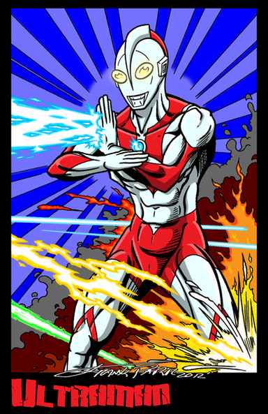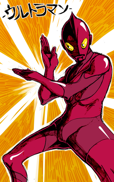 Ultraman is a very popular Japanese 'tokusatsu' TV series. It was a big hit here in Brazil in the 60s or 70s. I wasn't born at that time, but I watched some reprises that were on air in the 90s. Despite the poor visual effects, the concept of the main character and the stories are great. Visual effects were improved along the years, as new Ultraman series were being made, and the most recent ones are visually spectacular.The position of his hands in this drawing is a little inaccurate. Left hand should be a little higher, next to right wrist. I made the lineart from memory and searched for reference only for the colors. Sorry for any mistake
