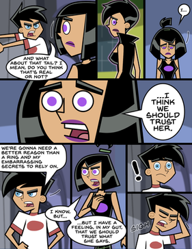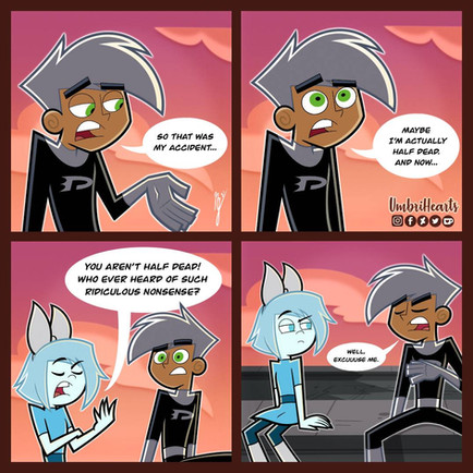 I sketched this comic page a LONG time ago when Allyett told me a story that happened in her home with her family. This is that story, but I finished painting it yesterday lmaoAmy is 4-5ish in most of my pics cuz I think she's adorable. And although she only inherited some of her daddy's powers, she can actually use the ghostly wail when upset. For those of you who don't know, the scrunchies on her hair are what keep her from going ghost, cause once she does, she can't turn back by herself, Danny has to do it. She later on learns how to do it on her own, don't worry.