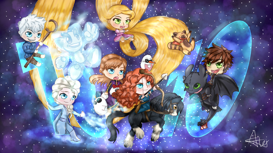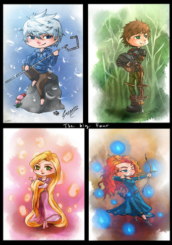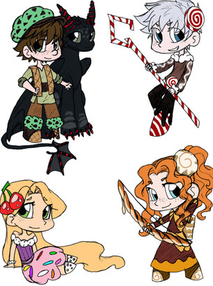 Oh, and they weren't supposed to be holding anything, but I decided that Merida needed her bow and that Jack is unable to make frost without his staff. So I gave them weapons, but not to all of them.