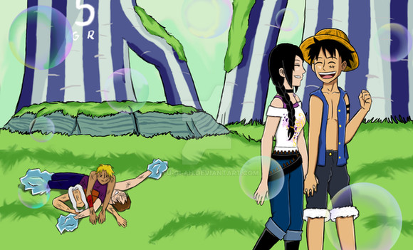 Just a lil fanart to the ark in the One Piece manga when Luffy and Co were ont he sky-islandSome time ago I read that part of the ark again and when I got to the chapters where Luffy had that huge gold ball around his arm, I started to wonder "Luffy has that much gold and Nami is standing right next to him...So where the hell is Nami's obsessive reaction to gold?"