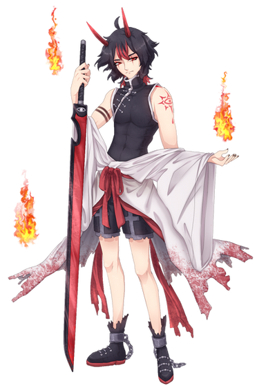 Ability: makes weapons more powerful with his own blood, the appearance of the weapons may also be significantly larger and they are always black-red
