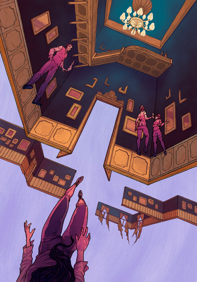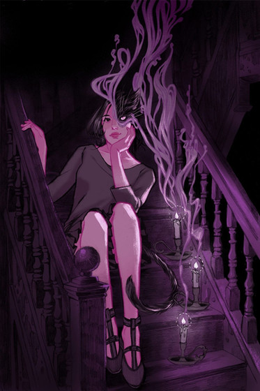 Love the sense of levitation in the girl's figure and the downplayed colour scheme. Beautiful work on drawing all the figures, and on the composition. Very compelling, well done!