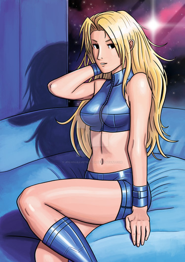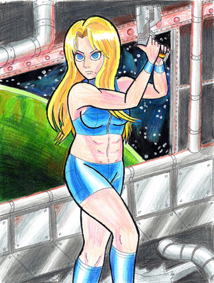 Very sexy Samus pic! Nice to see her in a sexy outfit that isn't her Zerosuit. Not that I don't like the Zerosuit, just nice to see somthing different. Also love the bright virbrant colors and the style you drew her face in she's gorgeous!