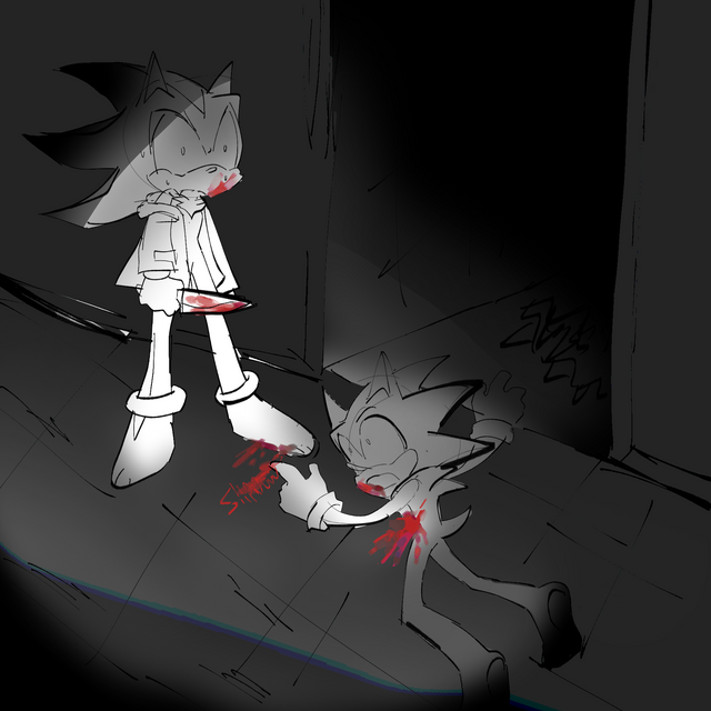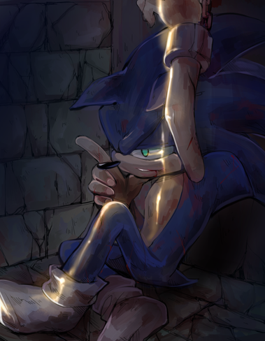 “Sonic oh God…” That wasn’t Mephiles‘s voice he looked up to see Shadow who was now kneeling next to him bandaging his legs. He untied Sonic’s arms and bandaged his wrist’s.