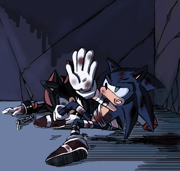 “I’ll get you out of here.” Shadow said carefully picking Sonic up and holding him securely before taking off at Top speed.