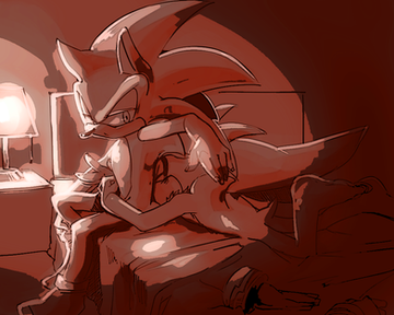 Tails: Hmm..... Sonic and Shadow have been hanging out a lot lately. I wonder what they're always doing together so that I can't come with them to at least stand by. *sigh* Oh well, at least I get the house to myself since I came back from that movie with Cream earlier than I thought. *happily whistling* *walks by Sonic's room*