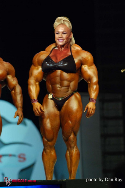 Circus strong woman Ms. Atlas uses her rock-hard bicep to snap a steel chain during her strength actRelated content
