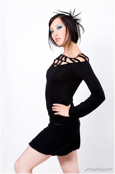 Is she double jointed at the shoulders? I tried that pose but couldn't quite nail it, haha (a.k.a my elbows stuck out and my wrists protested quite a bit) Great subject, her long torso really adds to the effect of her pose. And, of course, her outfit is awesome. Love the pattern.