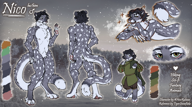 #characterdesign #hybrid #feline #bigcat #canine #character #commission #design #digital #illustration #leopard #male #mix #ref #reference #sheet #snow #snowleopard #wolf #snow_leopard #ref_sheet #art