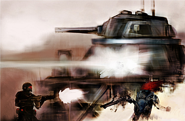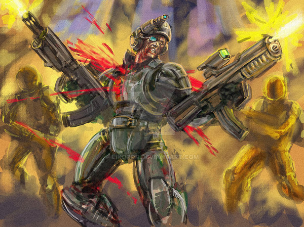 Whoa, this is so crazyawesome. I loooove it. The colours, and the fading/focusing effect are wicked. I frickin love how badass you made him look Sweeeet work, man. And good luck!