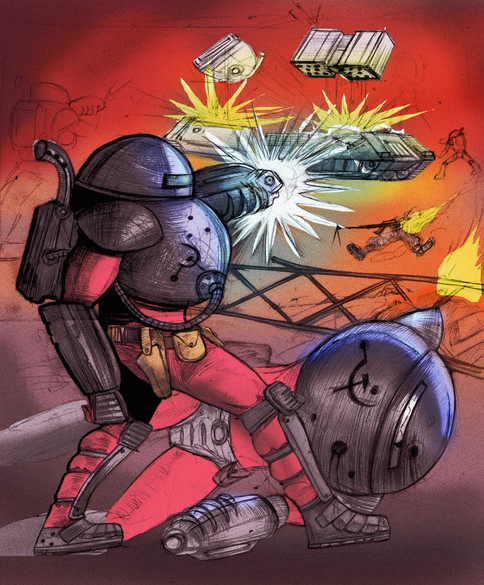 Here is my Robocop for battle artist competition. I've been reading a few books on digital painting, and wanted to put the tips into good use in this.I wanted a carnage of craziness in the scene, like those of video game concept art pieces. 22+ hours later, Im happy with it. See my very Rough Sketch Here