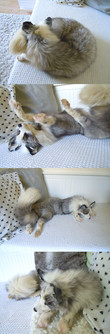 Hair Length Locus: LS_. Short hair is dominant, though I don’t know how many total genes are involved.