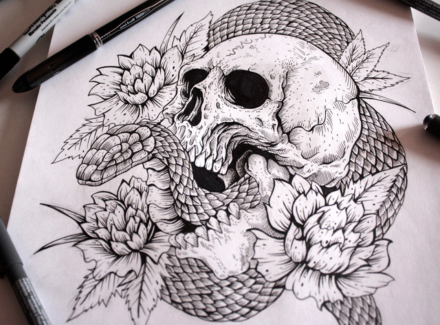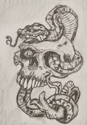 #darkart #darkartwork #flower #flowers #skull #snake #arttraditional #skullskeleton #art