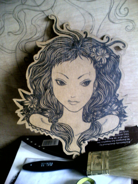 Es plumón, con tinta china, y unas texturas con pirógrafo sobre bule.En lugar de pintarlo con acrílico decidí que tenia que verse la textura del bule y pues como ese tipo de plumón no cubre completamente en superficies lisas vi que le iba bien a esto, aunque por lo mismo es muy difícil de hacer pues cuando levantas el plumón este deja como una gota mas oscura que tuve que difuminar. Mide 30 x 25 x 25 cm y lo hice en el 2009.