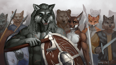 Khors - Cria de Fenris, theurge, hominideo.( Khors é originalmente Fianna, filho de Tomblin, o que esta sentado á direita filhotedeleao.deviantart.com/a… e irmão de Azim filhotedeleao.deviantart.com/a… . Abandonado pela mãe para encobrir um caso extra conjugal, ele iria morrer, mas Bowen descobriu o filhote e o acolheu. Fazendo o ritual de passagem Fenris. Junto com Khors está um espirito War Wolf.