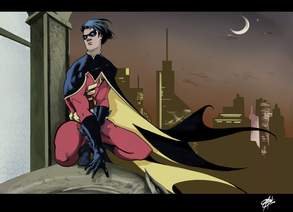 I found a test on the internet to find out what type of hero you are... I was Robin.I was happy with the result, but I don't really like his costume (all those yellows and greens make me sick and I don't think they make good nocturnal camouflage), so I decided to change it a bit.