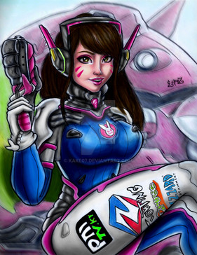 Patreon YouTube Instagram Twitter Facebook Drawing of D.Va from the video game Overwatch !