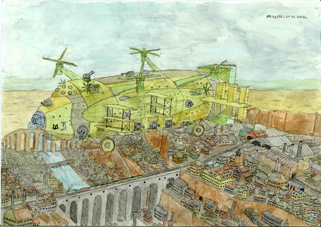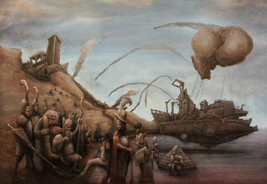#adobe #airship #bell #blimp #california #clouds #dali #desert #fantasy #floating #flying #giger #helmet #mission #monks #red #riders #roof #surreal #tower #trees #zeppelin #leothefox