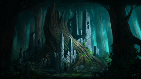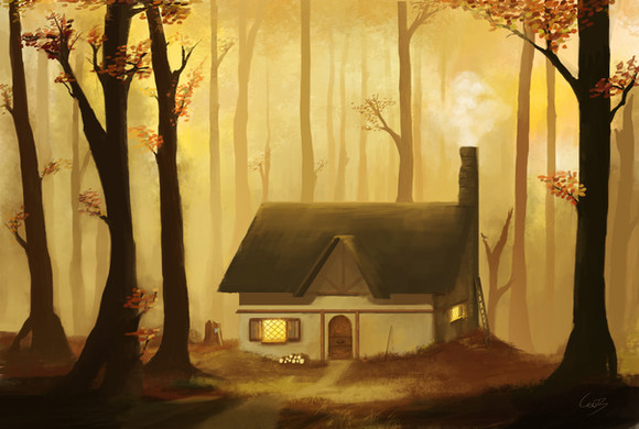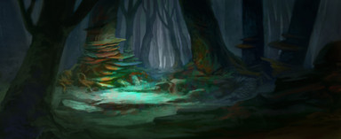 very nice atmosphere, it's a lil bit foggy, no super strong contrast tat's harsh on the eye, very nice the body of leaves seem a lil flat (the shape) and uniform, maybe u can add some stray branches and leaves