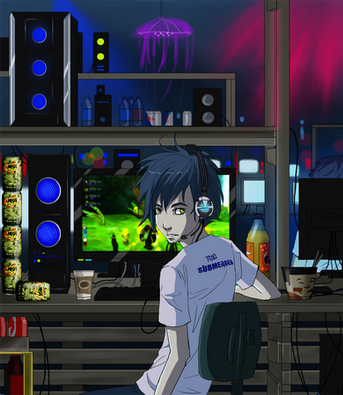 ohh, like the computers, heh all shiney. nice colouring too...cool picture!