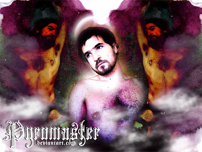 I love this. Looks like dear Pyromaster has reached saintly status in heaven ... with halo ... and in the clouds. The colour/colors and the whole design is really excellent.
