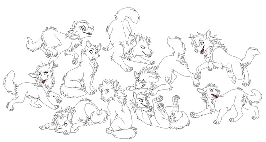 All the puppies recently born in Inaria's pack on "The BlackBlood Alliance : Dissension" forum, all together. x)