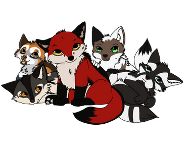 Merryl (the pale grey one), Mello (the black on the top) and Maya (the red and brown one) are the children of SilverShade and Oakheart,