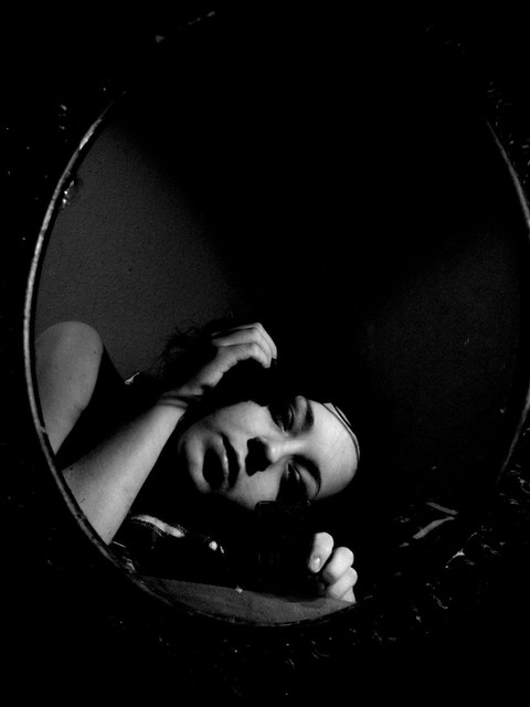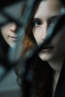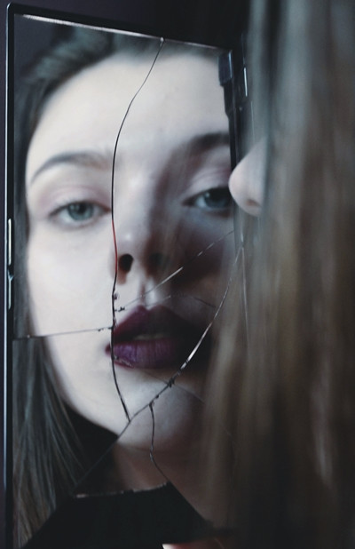 The expression is a bit insane, for me, or rather, I get the impression that it feels a bit insane... I like the focusing and how we are more focused on the reflection than the glass itself.