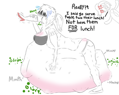 When the girl with the round butt eats the thingsΒ Β Β , but really mostly her and when she eats the other woman XD Β also her belly and the voice coming from her stomachΒ