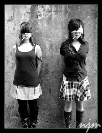 hm yeah... cool! I like the reflection of herself and the other people in the building on the left... but I also like the dark people on the right putting some negative emotions in that photo... she looks great. well no, this is not exactly what I want to express... her expression and the way she's posing is great
