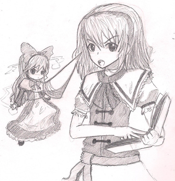 the request was Tenshi vs Yukari, sorry not a battle scene.. its kind of like a beginning of a battle.. XD