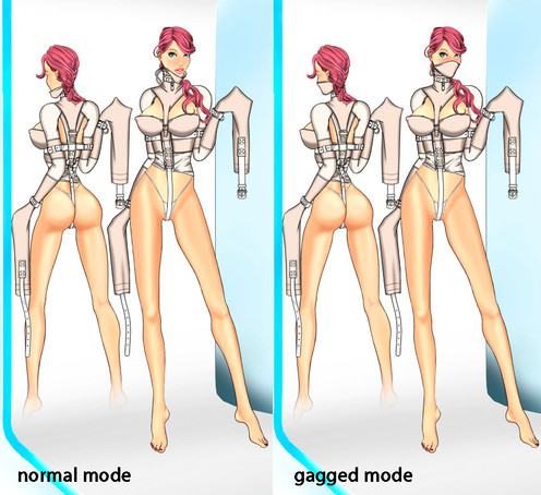 Absolutely gorgeous. I love the drawing and the design. Very cool how you were able to make her look very graceful yet totally restrained at the same time. Good job on the sexy crotch strap and the uncomfortably high collar too.