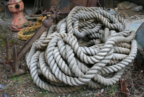 I find this fascinating. Very intricate. Those balls of rope, to me, are funny hanging there
