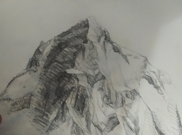 awesome mountain drawing i like how you got every detail in the rocky edges and the highlights awesome pic