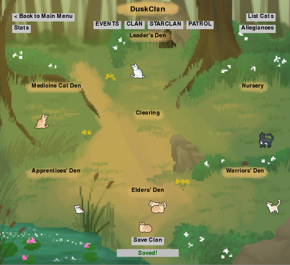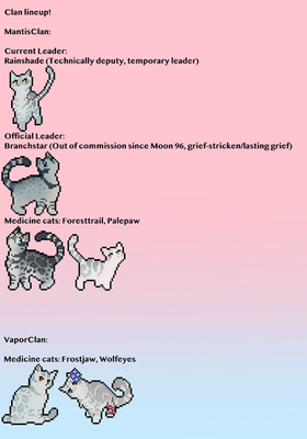 Welcome to my ClanGen clan!For starters, this is Nectarclan. They're a compassionate clan who seeks no conflict. They live in the middle of a forest surrounded by trees that produce sap (that they're known for using). If you'd like to know about the cats, let me know! I'll be making a journal on this clan following their life, and also upload my own art from the clans. I'll post if new cats come in the clan as well.