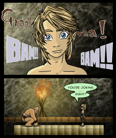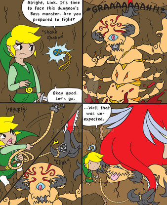 Link's been watching Souther, then?(Everyone's going with the wrestling, I can't help but think of Tensho Juji Ho. Β Mostly because I'm picturing Link doing that one handspring jump to get the height.)