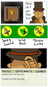 Yet another Link and Mega Sableye picture.In Twilight Princess, remember how you had to put a rupee back into its chest because your wallet was usually full?