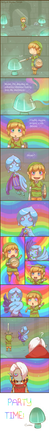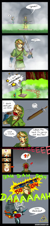 I remember in Phantom Hourglass how if you came across any Gray rupees (which made you lose money instead of gain) Link would hold them above his head and have a disappointed and sad face. I like to think that he sobs while stuffing them into his rupee sack with Ciel looking at him likes he's a psychopath. Oh Link, you're so silly but we love you.
