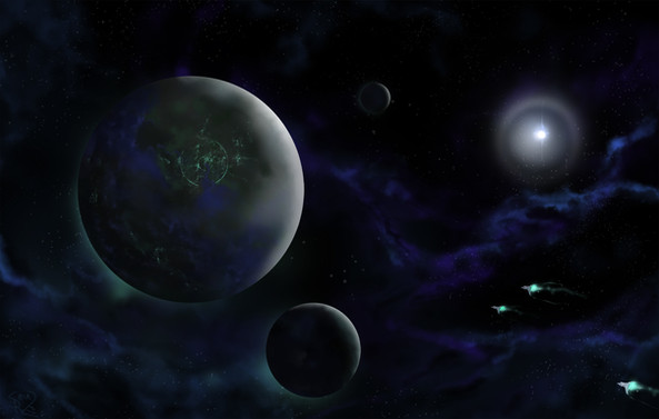 A re-imagination of one of my previous spacescapes.A friend wanted me to add a Covenant fleet warping into the system. The ships look a little off because of the blurring done to the orginial image. I could have put more effort into the overlay, but this was just a "quickie" to see if it would turn out. Perhaps a future attempt will yield better results.