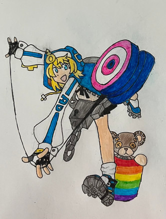 Fanart of Bridget from Guilty Gear ! this is specifically her outfit from xx and all it's re-releases. This was completed entirely using Crayola crayons ( besides the stickers of course lol )I've recently gotten into Guilty Gear ! I love Bridget but she actually isn't my favourite , my #1 favourite is a tie between Faust and Bedman