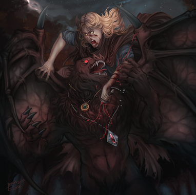 This... This one took me a lot of time. I wanted both to portrait a scene, and practice more on backgrounding. I really like how to ended up.And btw, the blood looks like that on purpose.