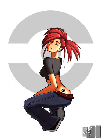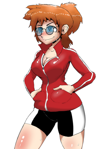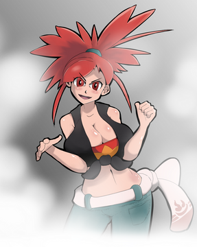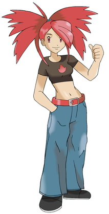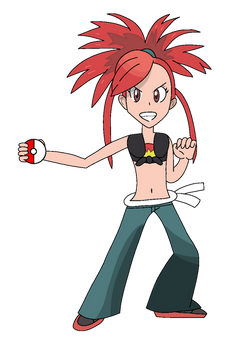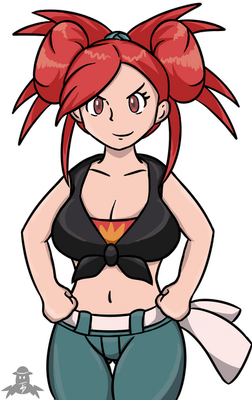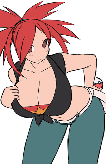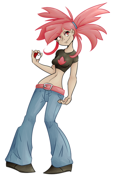 #adriane #bluejeans #cleavage #gymleader #largebreasts #midriff #navel #palmtreehair #pokeball #pokemon #redhead #fabricbelt #bellybutton #flannery #flannerypokemon