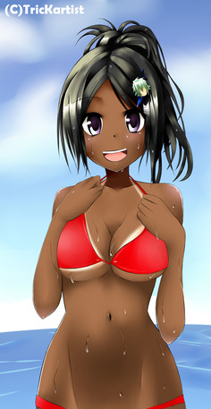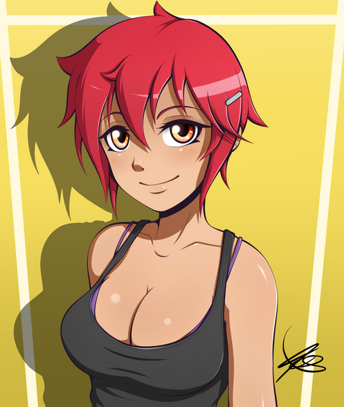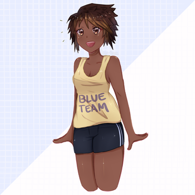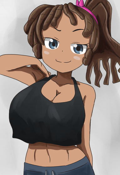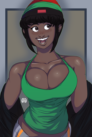 #blueeyes #blushing #cap #caption #cleavage #darkskin #girl #grin #hugebreasts #largebreasts #mediumhair #oc #originalcharacter #pinkhair #smiling #trackjacket #tracksuit #tannedskin #darkskinnedgirl #highvisibility #grinning